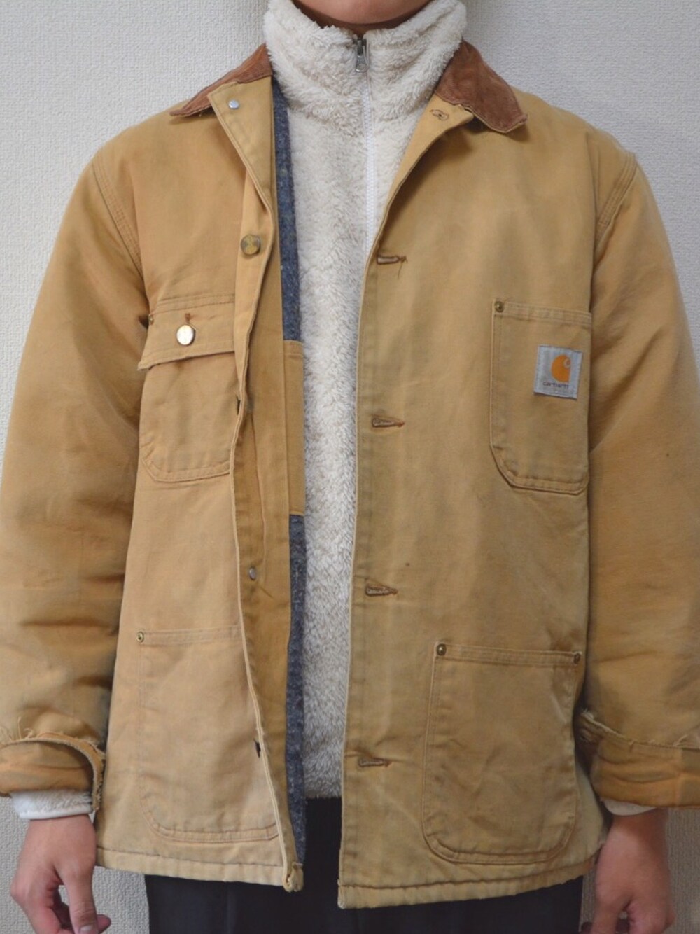 古着屋で買ったcarhearttのアウターとユニクロのフリース合わせました