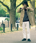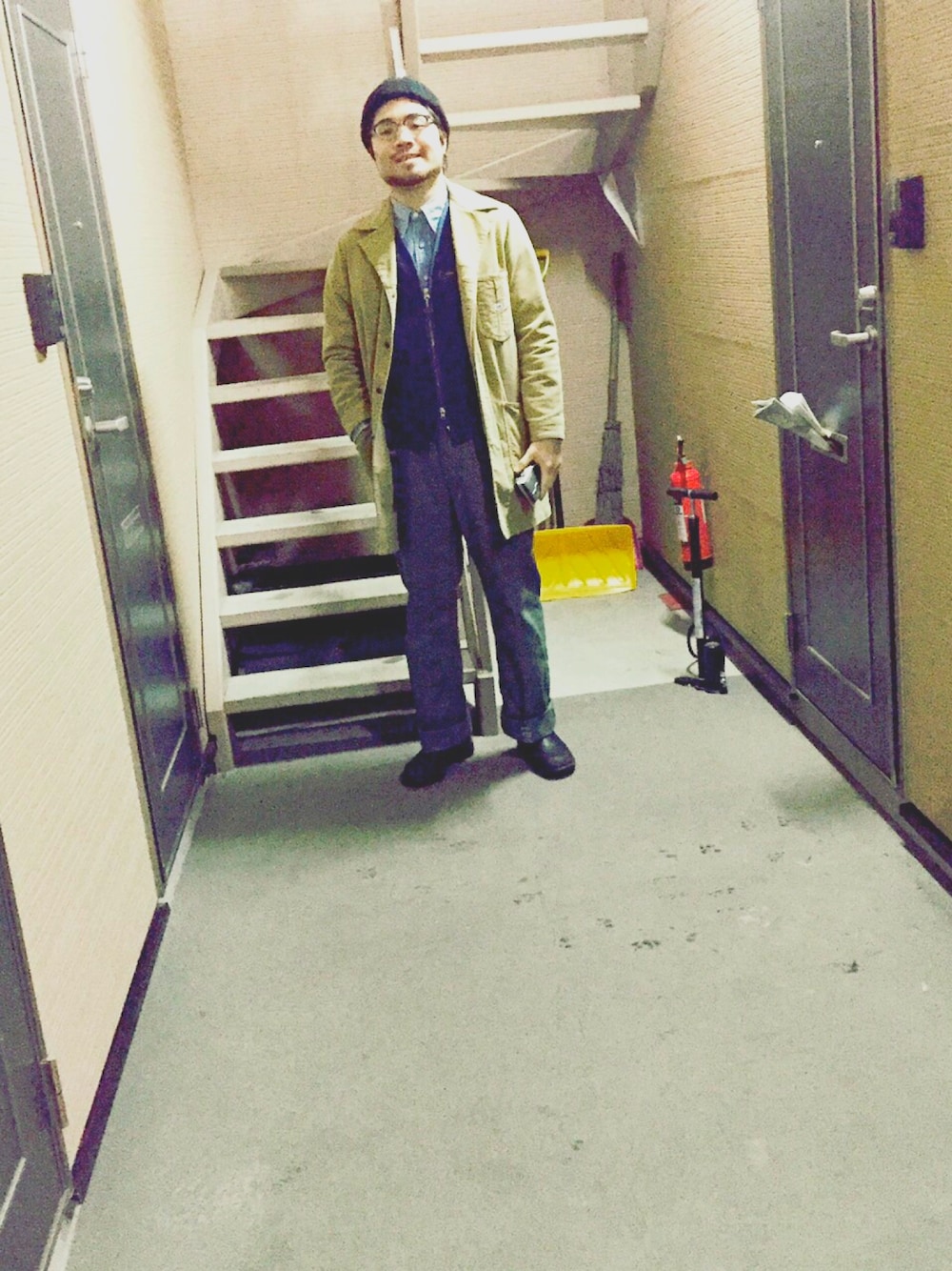 いい笑顔ですね。 ビンテージのワークパンツ、めっちゃお気に入り