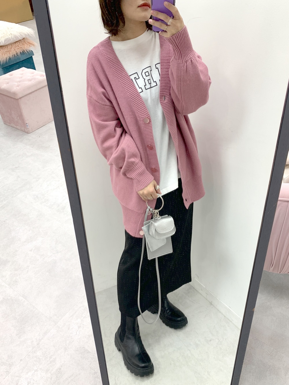 s13_olive(OLIVE des OLIVE)のカーディガン/ボレロ「ダブルフロントチュニックカーディガン/ニットカーディガン」を使ったコーディネート