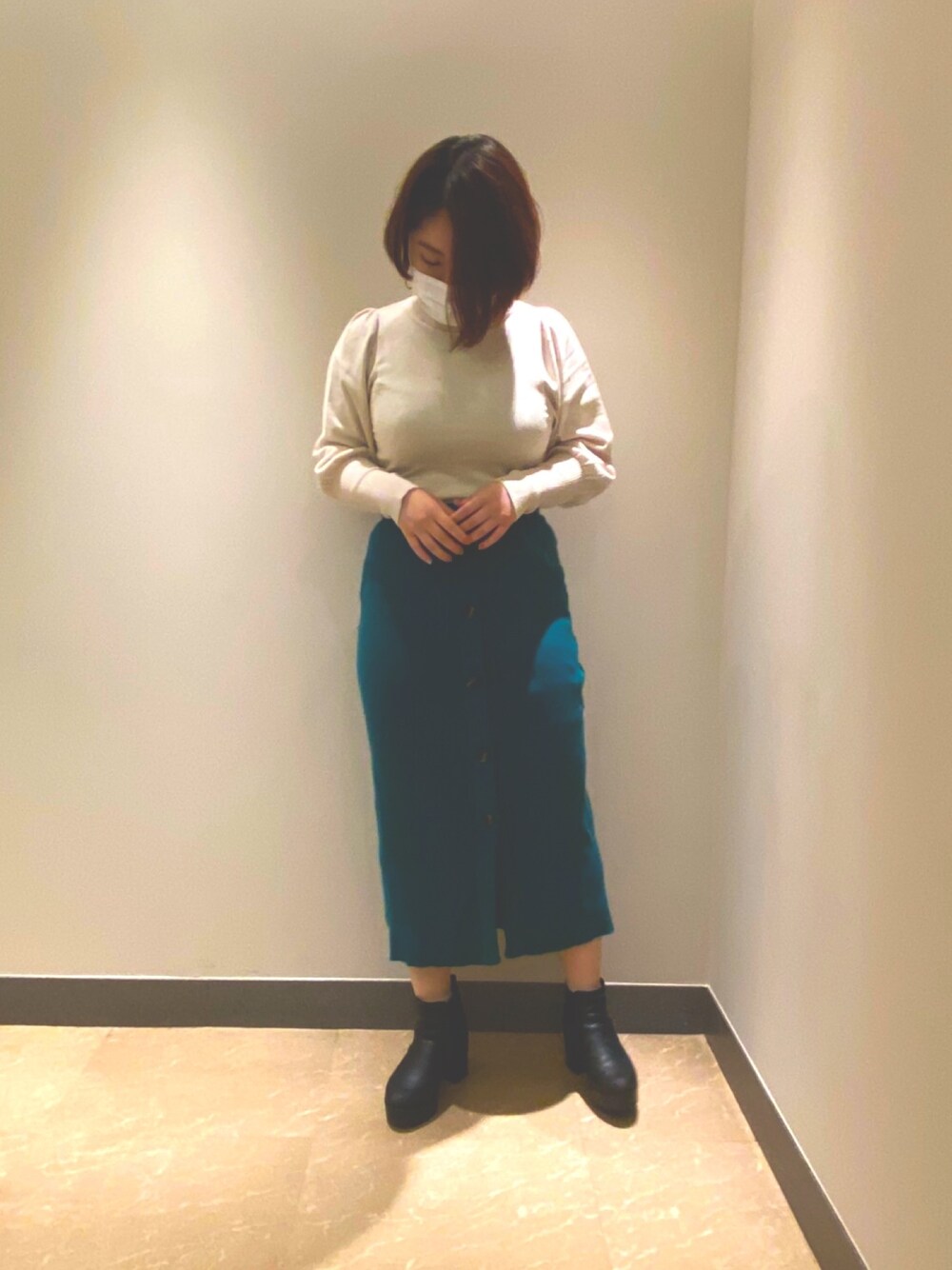 友季のスカート「FRONT BUTTON UP RIB KNIT スカート」を使ったコーディネート