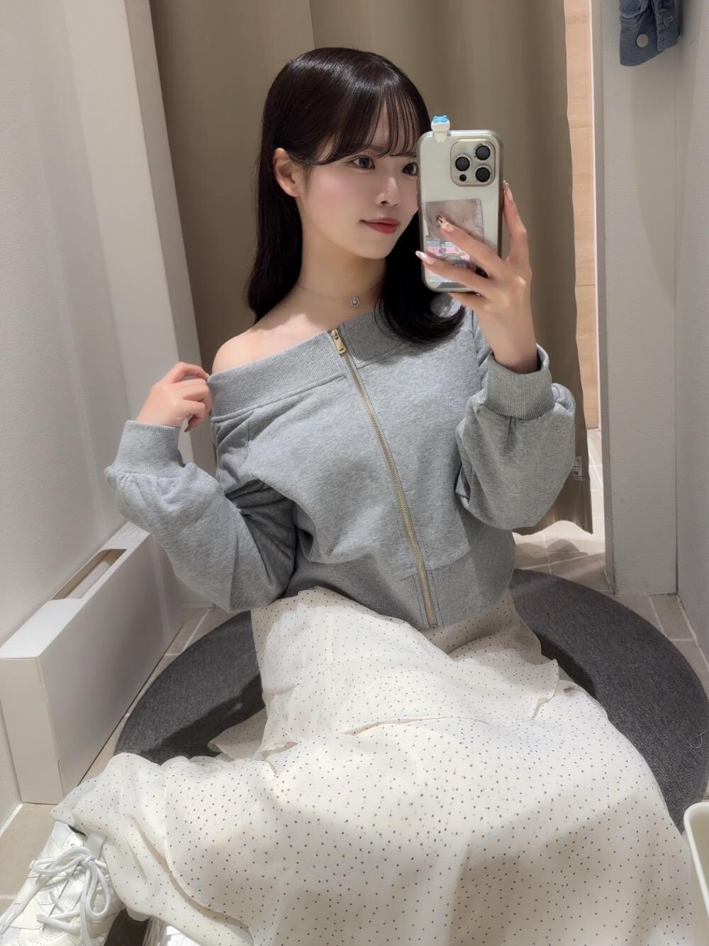 オフショルにもできるジップトップス❣️ パンツ合わせはもちろん、私はキレイめが好きなのでティアードスカートと合わせました🫶🏻🫶🏻