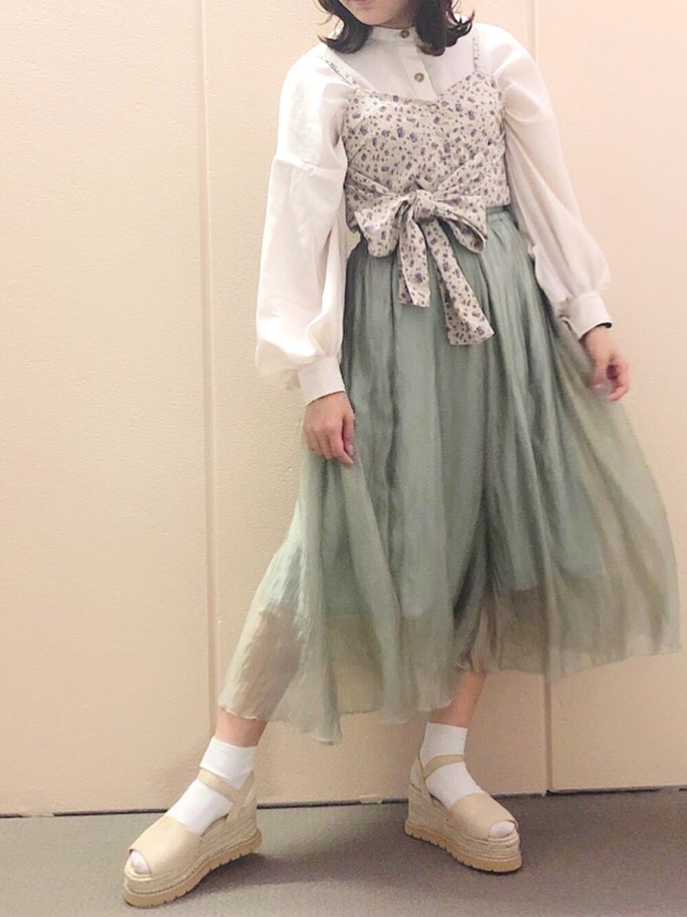 ☑︎キラキラボリュームロングスカート color : ivory / brown / green ウエストがゴムだからとにかく楽ちんです! ポケットがついてるのもありがたい^^ こちらのビスチェの着回しコーデ載せてます♥