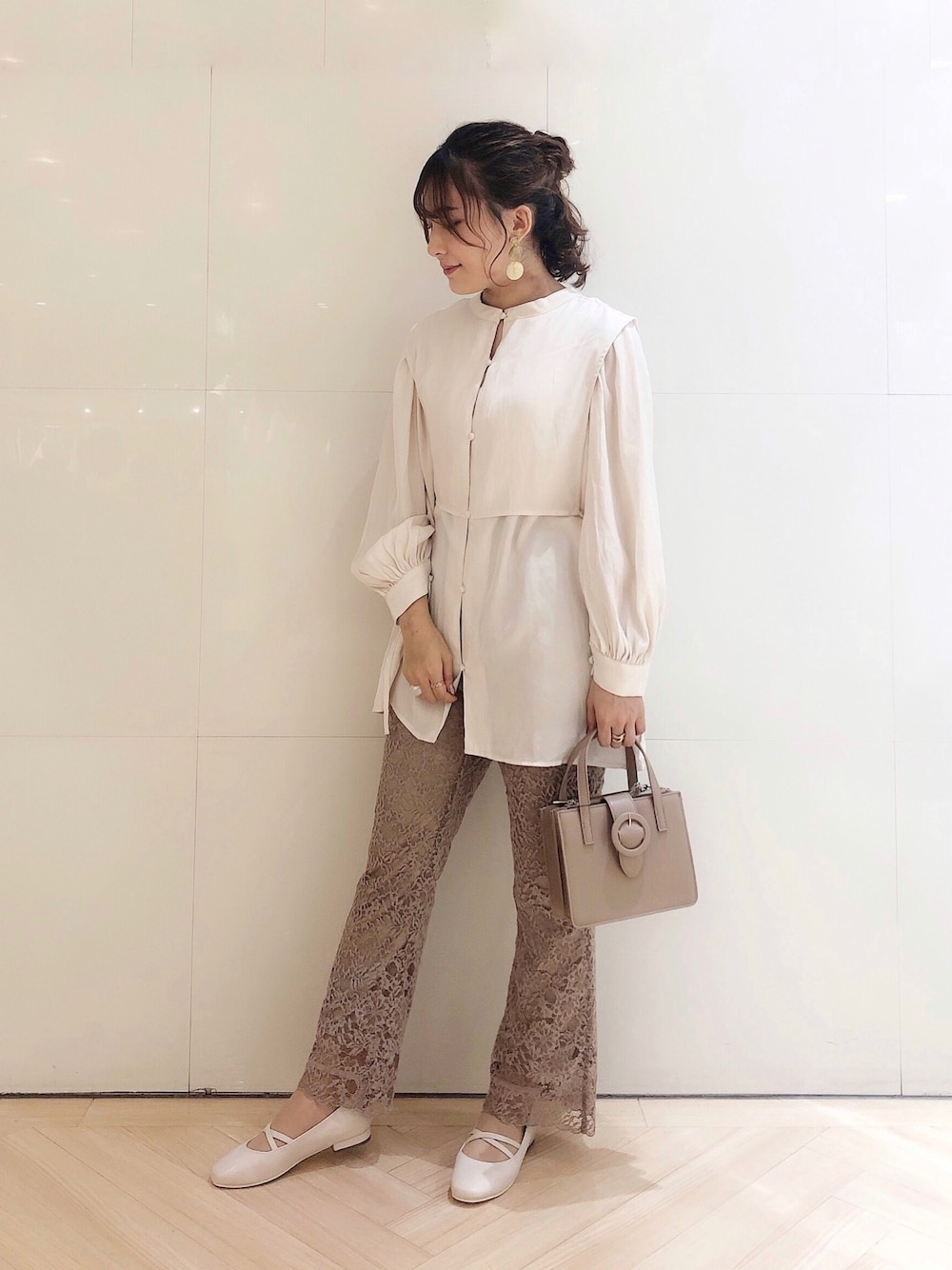 Instagram → @s_25xt この秋大注目のチャイナデザインのチュニックを レースパンツと合わせてフェミニンに 可愛らしく着こなしてみました! サイドリボンの切り替えの位置が高めなので 腰の位置を高く見せることができます♥