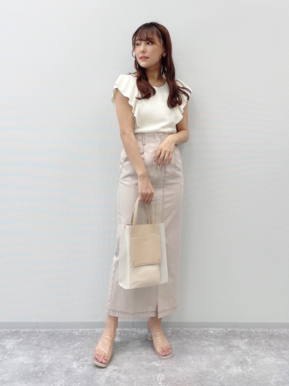 Instagram ▶︎ @s_25xt ワントーンの大人っぽいキレイめカジュアルにしてみました! トップスのフリルはシンプルめなので甘め過ぎず、着回しがしやすくなっています!