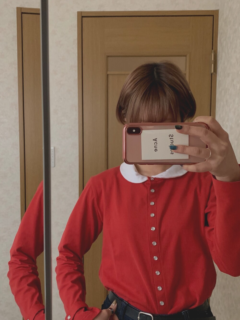 🍅 新作のプレッション早速着る ! 赤かわいい ! 服は黒と白と赤がすき !