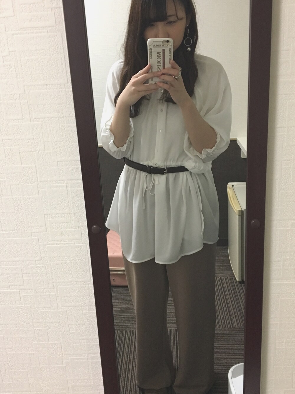 リンゴのシャツ/ブラウス「【前後2WAY】ウエストドロストブラウス」を使ったコーディネート