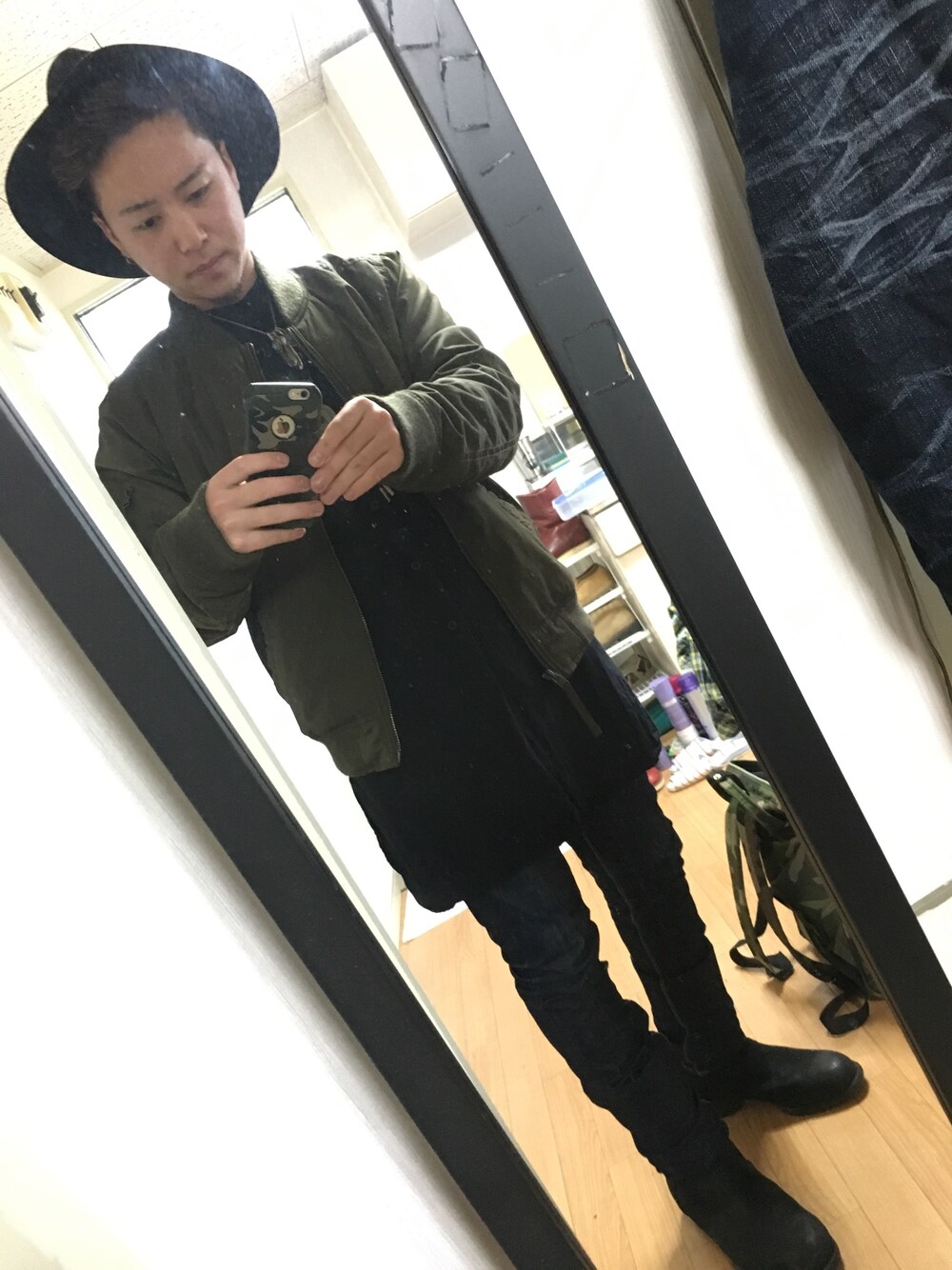 中にロングシャツを着て 上にma-1で長短をつけました。