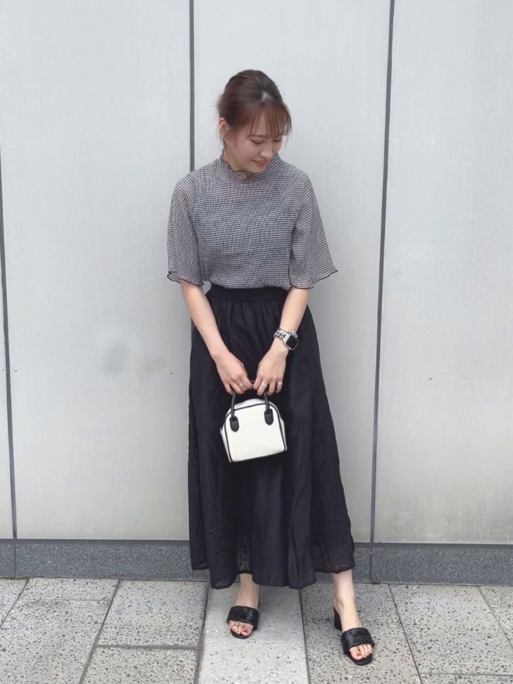 【カップ付きチューブインナー】着用サイズ→M 【ELENCARE DUE ギンガムプルオーバー】着用サイズ→F 【コットンレース切替フレアスカート】着用サイズ→F 【ORiental TRaffic メッシュサンダル】着用サイズ→M ・ ・