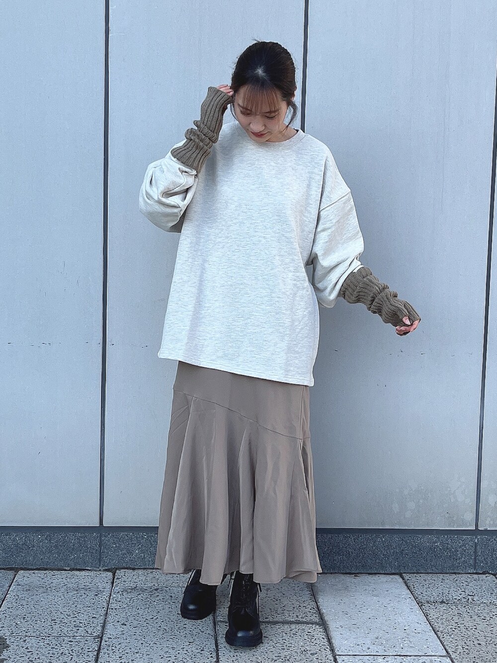 【Disney/バックプリント裏毛プルオーバー】着用サイズ→F 【イレヘムマーメイドスカート】着用サイズ→F 【ORiental Traffic レースアップブーツ】着用サイズ→M