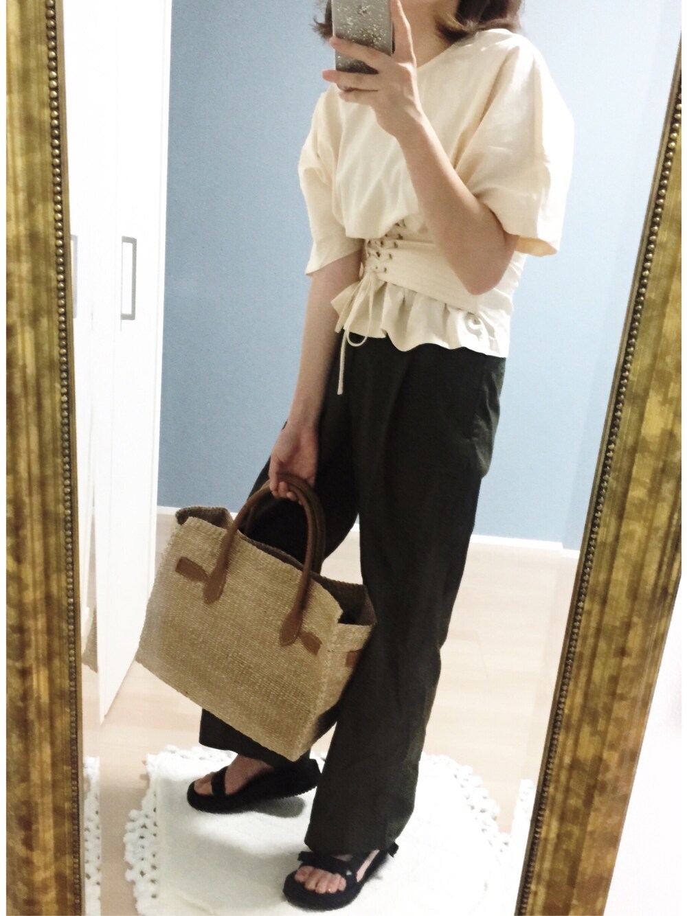 コルセット風のトップス☻ 今日も仕事😭 子守はパパ🙏 夏の旅行も申し込みしたし、頑張って働こ〜💪🏻❤️