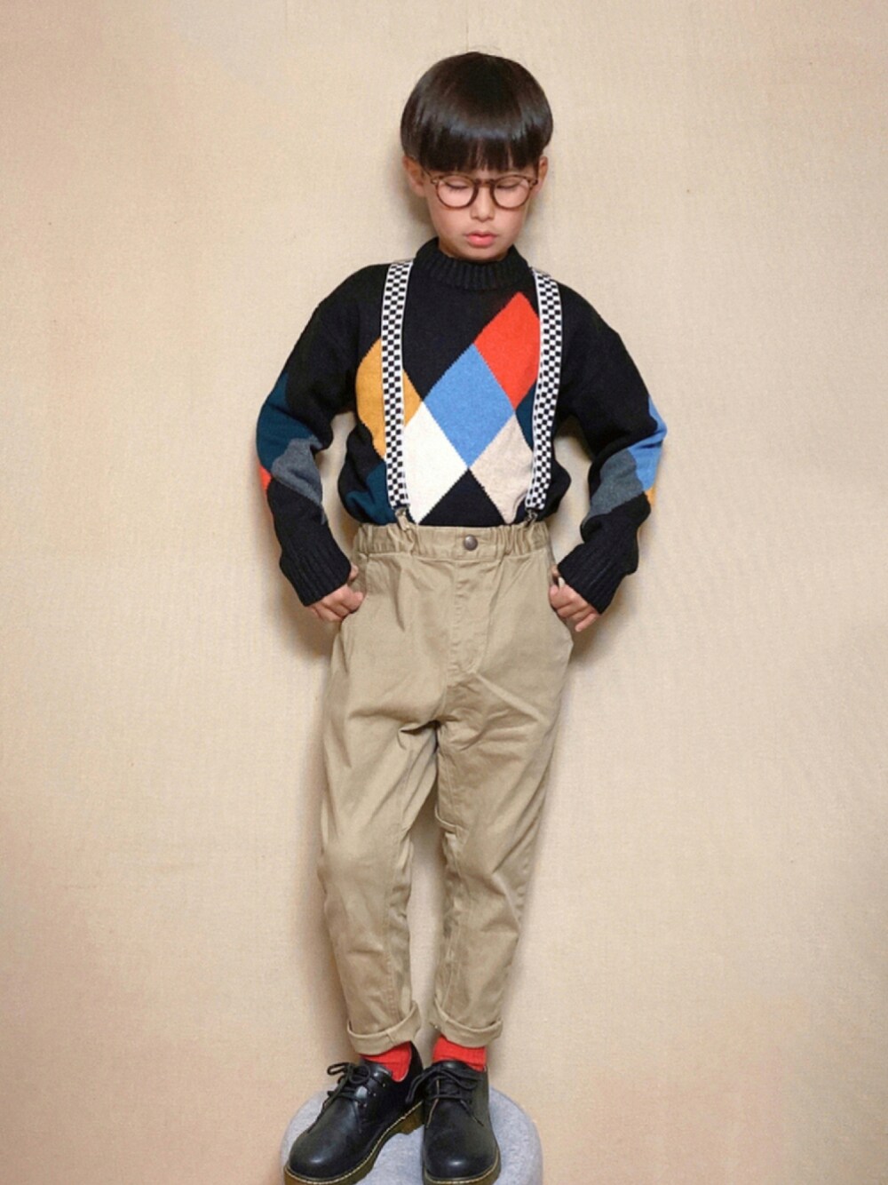 いつもありがとうございます♩ 一目惚れしたアーガイルニット🧶 これだけでコーデが決まりそうだけど #タックイン だったのでサスペ合わせしました 個性出せたかな、、
