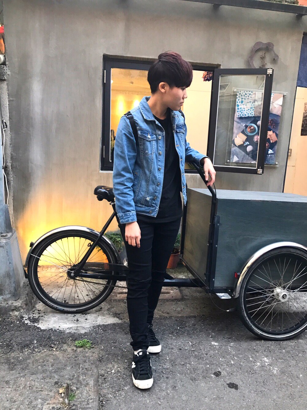 簡單牛仔外套 搭配全身黑 襯托明天要開工的心情🤦🏻♂️