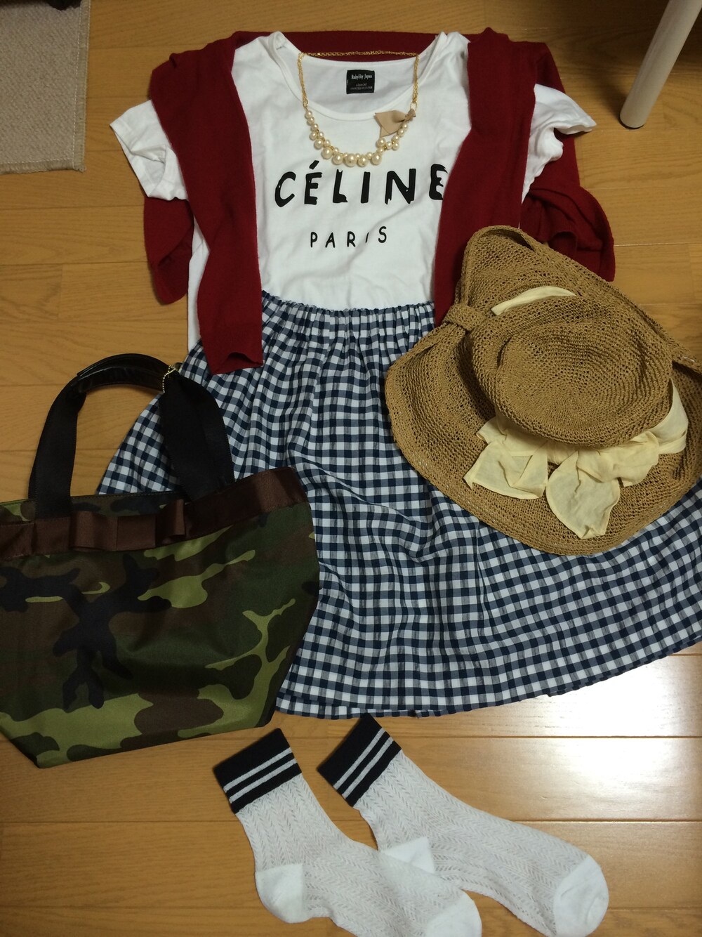 主役のギンガムスカートはIENA♡ 今年はカモフラージュ柄が 人気みたいですね。 ハードなアイテムなので、バックで 取り入れてみました(*^o^*) 野球観戦行ってきます♡