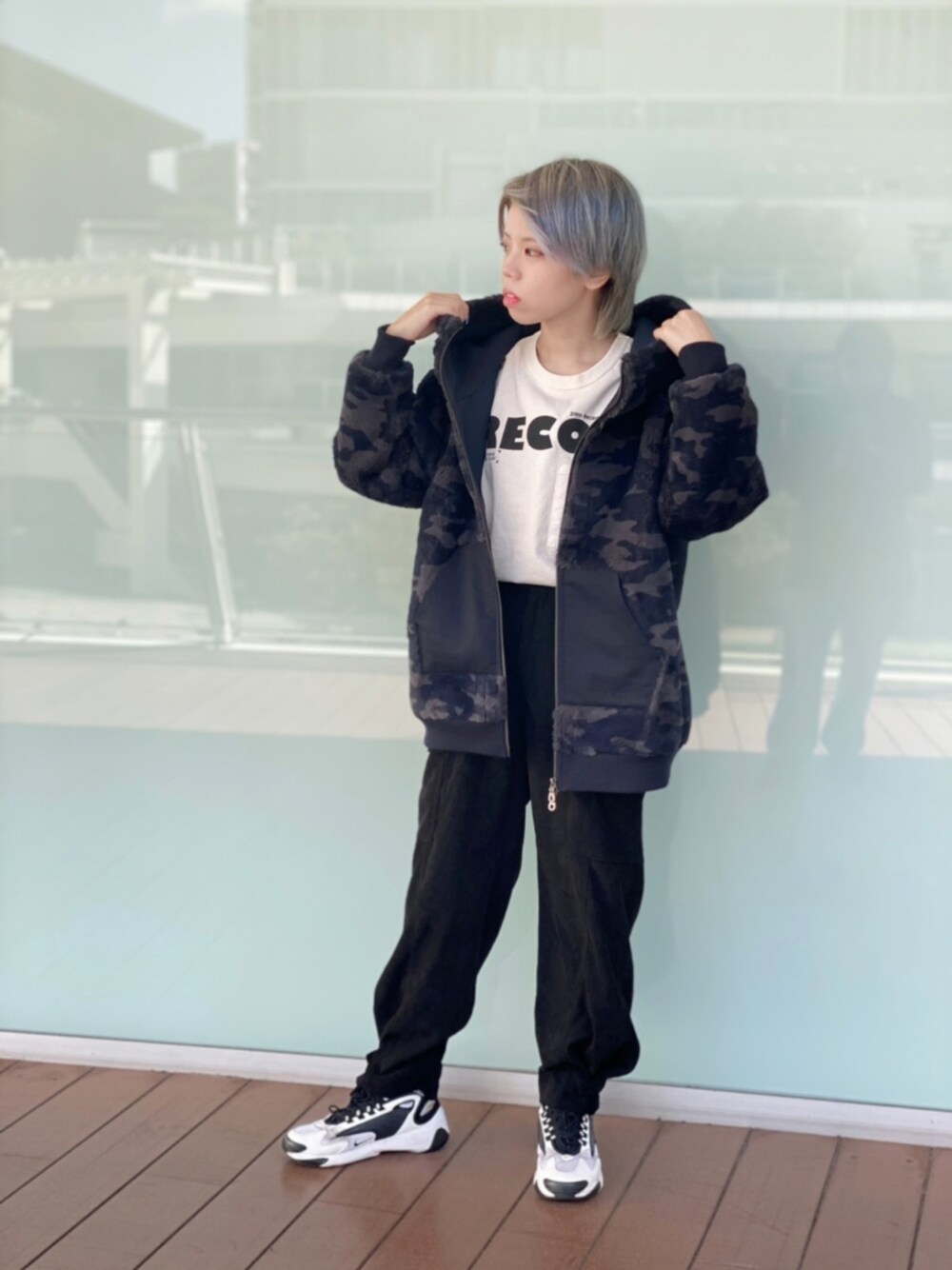 🐺のブルゾン「カモプリント シャギーボンディング ジップフーディー/ CAMO PRINT SHAGGY BONDING ZIP HOODIE」を使ったコーディネート