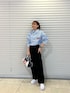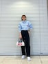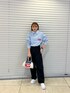 MIOのシャツ/ブラウス「レディース シャツ 長袖 ストライプ ロゴ 刺繍 オーバーサイズ 羽織」を使ったコーディネート