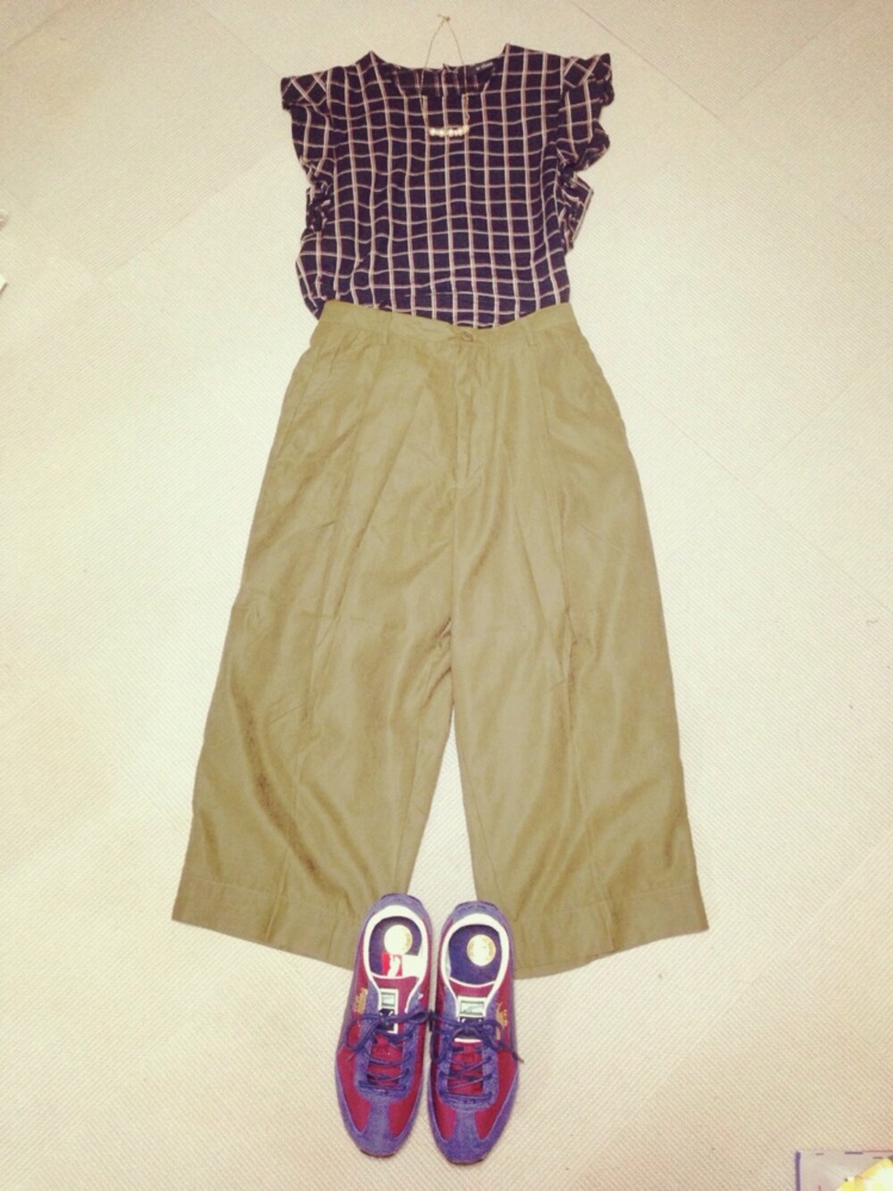 トップスも ワイドパンツも スニーカーも。 全部お気に入りです。