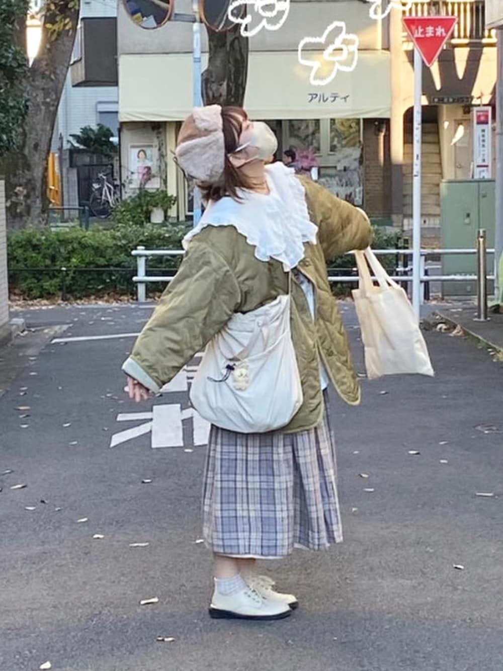 s a k iのノーカラージャケット「《JaVaジャバ コラボ》大人のこなれ感。 ノーカラー オーバーサイズ キルティング コート」を使ったコーディネート