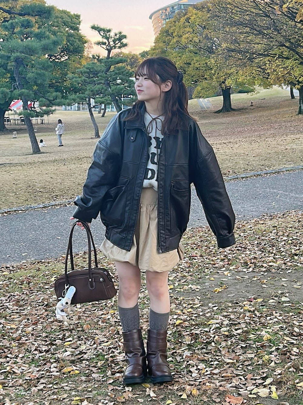 一日の中でも寒暖差激しい今の時期風邪通さないレザージャケットピッタリすぎる〜🍀*゜