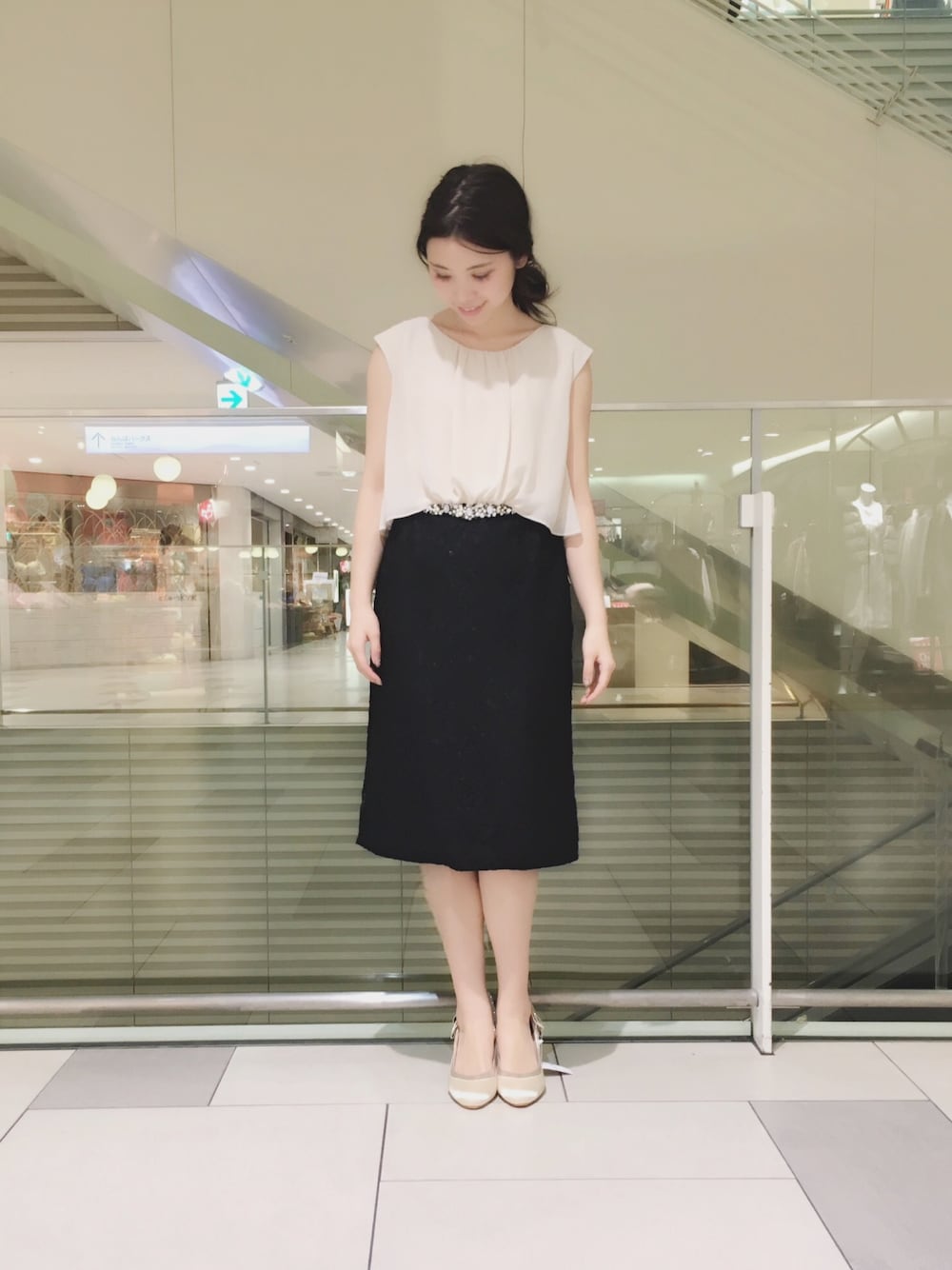 スカート部分はブラックの総レースで、 ウエストのビジューと合わせて 上品な雰囲気を演出します。