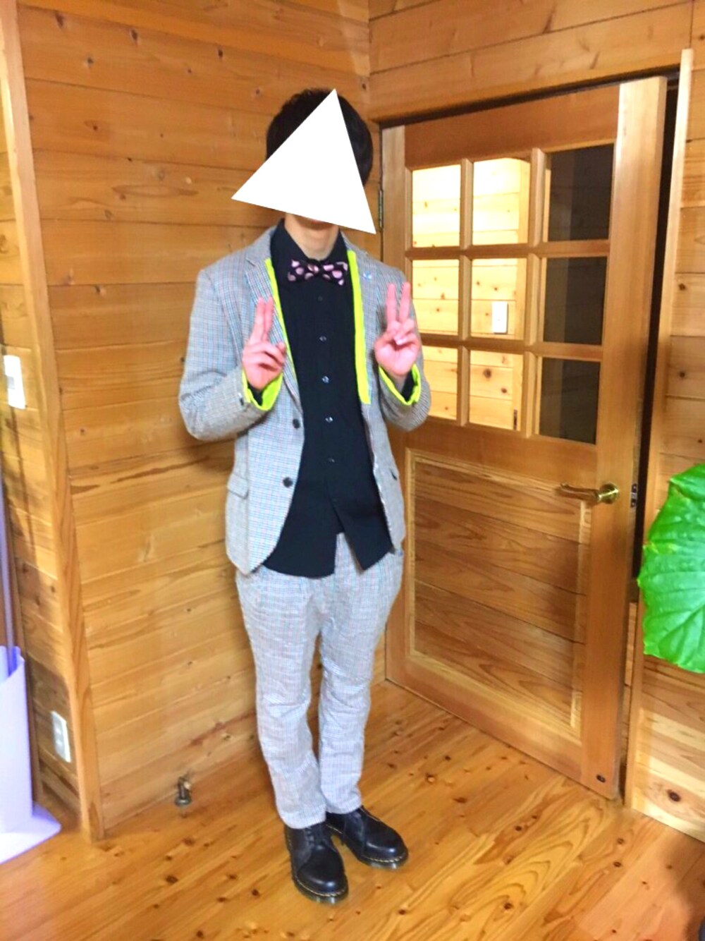 FRAPBOISのセットアップ💃 イケてます😎 それにCOMME des GARÇONSの蝶ネクタイとドークターマーチン👞 ピースは気にしないでください😂