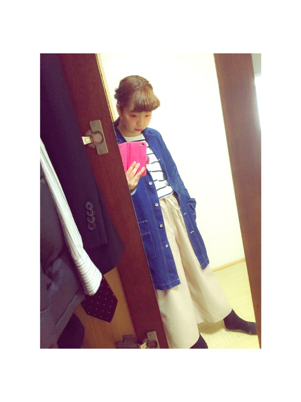 着用コーデ:23件コート・古着 靴下・靴下屋(多分) いいねsaveありがとうございます🙏🏻KOEコーデ反応良くてビビってます(笑) 今日はゆるゆるコーデ!デニムとボーダーとベージュで最高の合わせ方💟 こないだのKOEボーダー着まわし🔃使いやすい〜 パンツは新入りさん✌🏻️!履きやすいしウエストゴムでゆるゆる感がたまらんのでこれから履きまくる😜