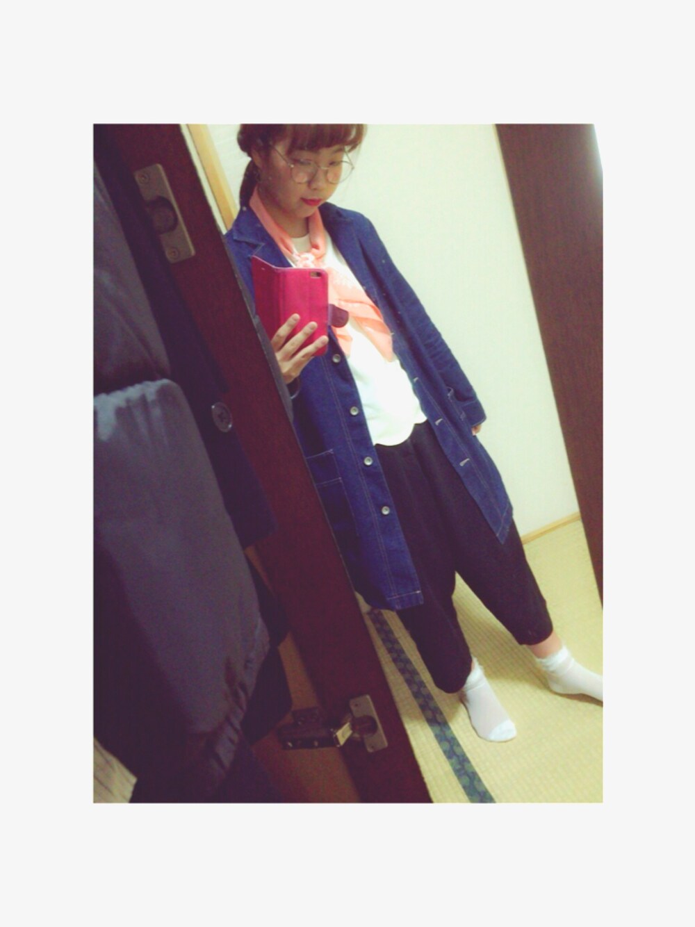 スカーフ・RETROGIRL アウター・古着 靴下・靴下屋 シンプル〜〜〜にまとめた、中はモノトーン LOWRYSパンツ今年も大活躍 スカラップかわゆ〜見えないが7分袖です 靴下透けてるやで スカーフやっといい感じでつけれた、るんぴ