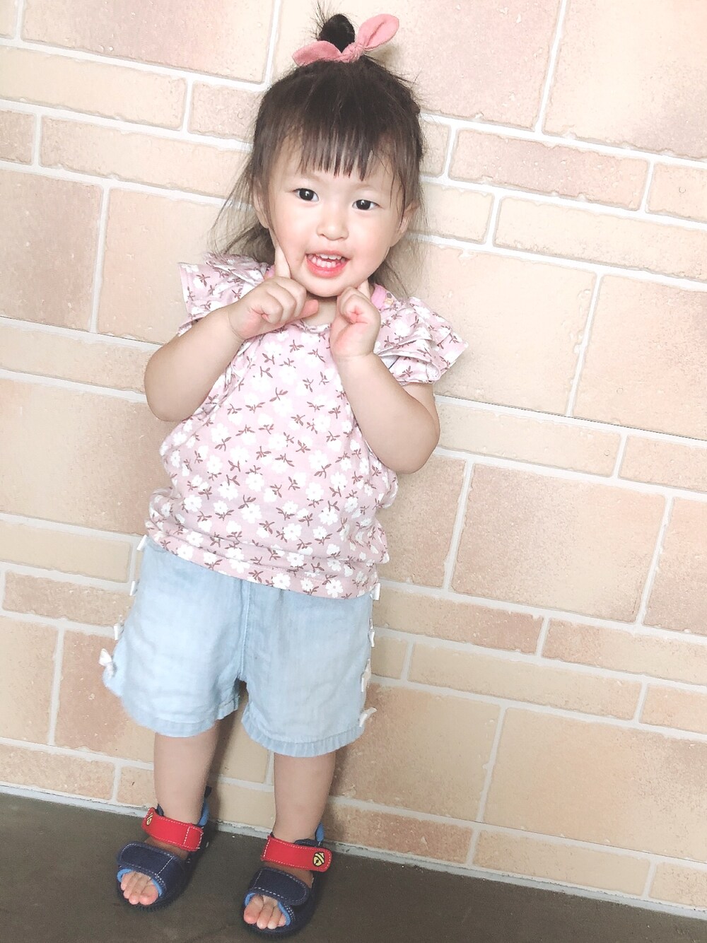 このトップスようやく着せれた〜😂 バースデイのママラク💕 そして、プティのズボンは長女のお下がりで100なんだけどズレることなく履けてる次女🤣 なんなら長女、まだ履ける🙄🌀 長女がガリガリ過ぎて…⚡️ 私のお肉を分けてあげたい😑