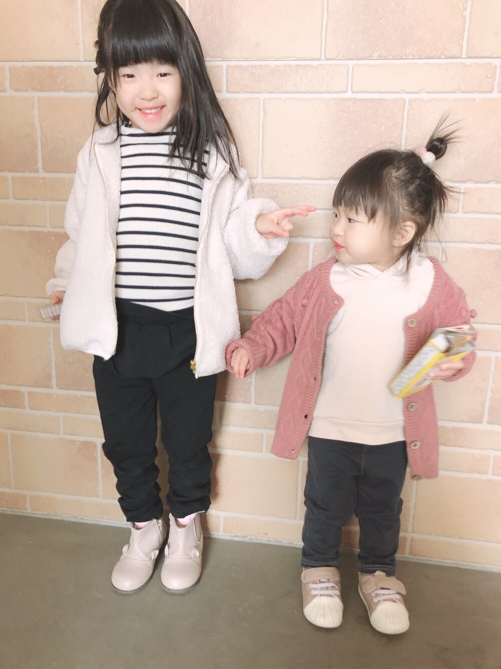 久々に姉妹で🎶 次女のトップス、うさ耳フードパーカーでめちゃくちゃ可愛い💕 長女サイズもあったけど、フードパーカー嫌がるから🌀