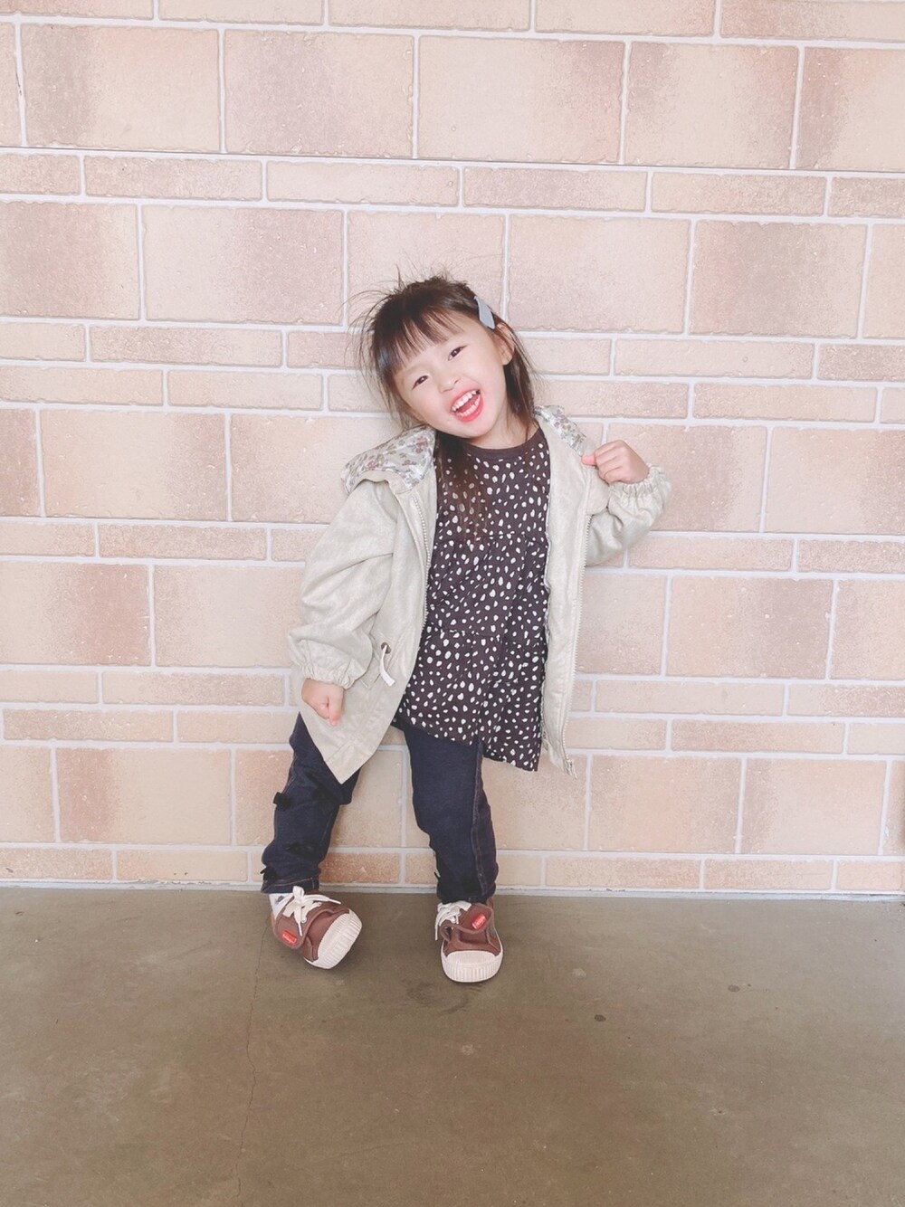 プティのトップスかなり前に買っててようやく着せれた😂 そして急にめちゃくちゃ寒い🌀 気温の変化についていけない😭💦 次女3歳になりました💕