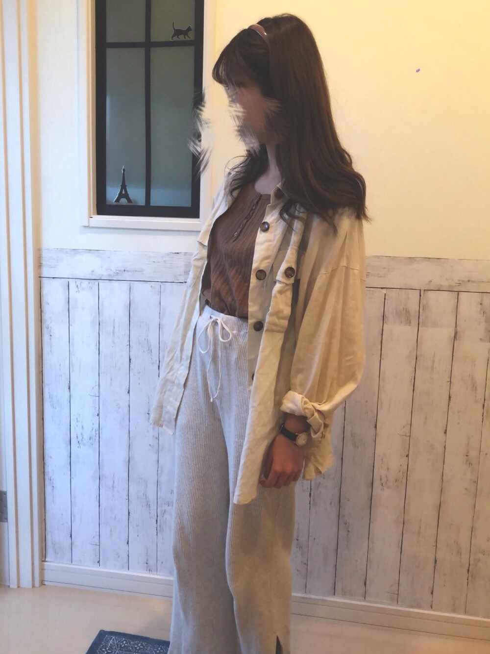 大好きなwclosetのお洋服たち💕 パンツはスリット入ってるしホワイトじゃないけどベージュに近い色で珍しいから迷わず購入🙊 もう肌寒いから上に前回載せた WEGOのセットアップの羽織を1枚着ました😌