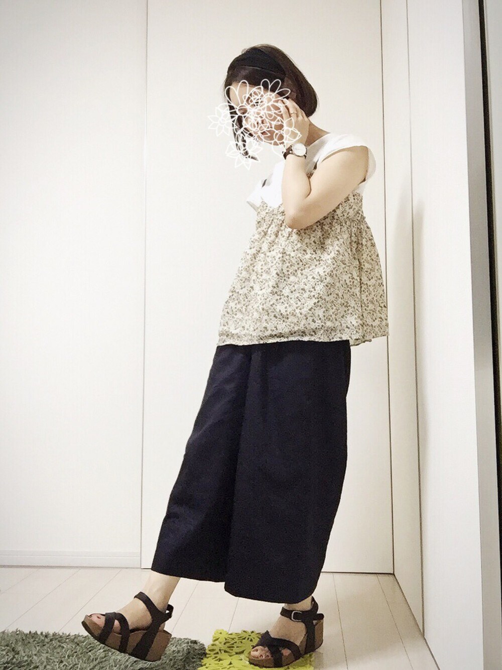 花柄×白の組み合わせが大好きです。 earthの花柄キャミソールは昨年のものです。