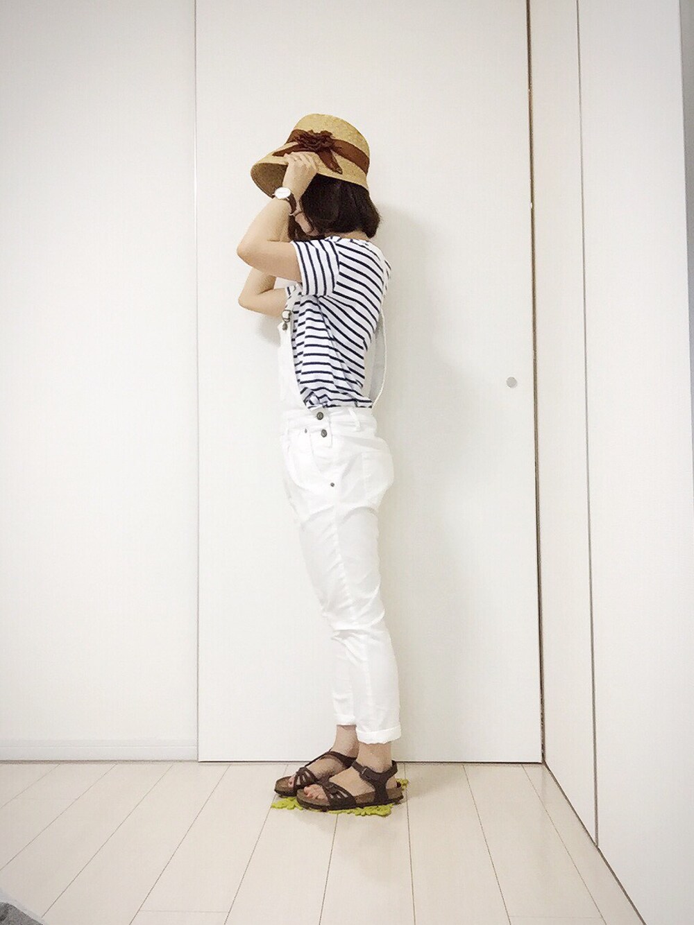 ボーダー×ホワイトコーデ。 梅雨明けし、夏本番を思わせる猛暑。 気分も上がる夏空です。 お昼ごはんは近くのパン屋さんのサンドイッチ。これが大好きなのです。
