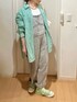 ご覧いただきありがとうございます♪ いいね・save・フォローいただくとうれしいです♪ グリーンのアイテムで大人カジュアルコーデ