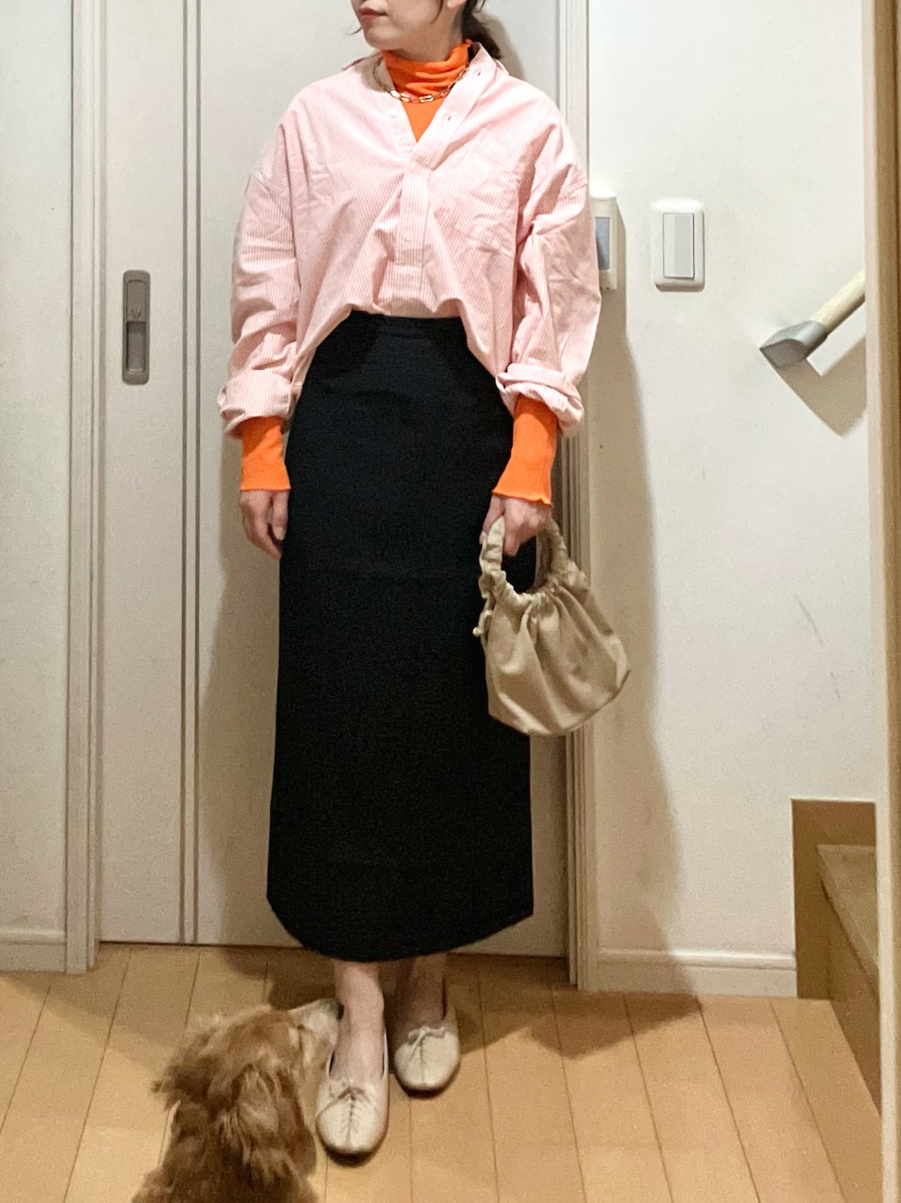ご覧いただき、ありがとうございます♪ ビタミンカラーのオレンジを取り入れた レイヤードスタイリングです。 大人カジュアルに♡ いいね、save、フォローいただくとうれしいです♪