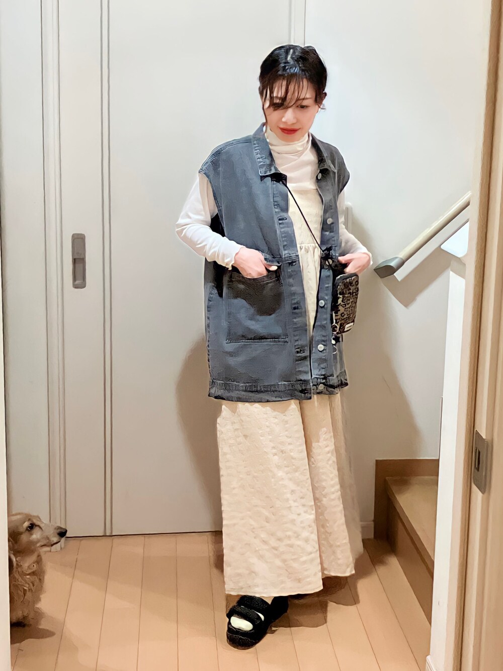 ご覧いただきありがとうございます♪ いいね・save・フォローいただけると嬉しいです♪ 今日はカジュアル強めに♪ デニムベストはゆったりめもかわいい♡