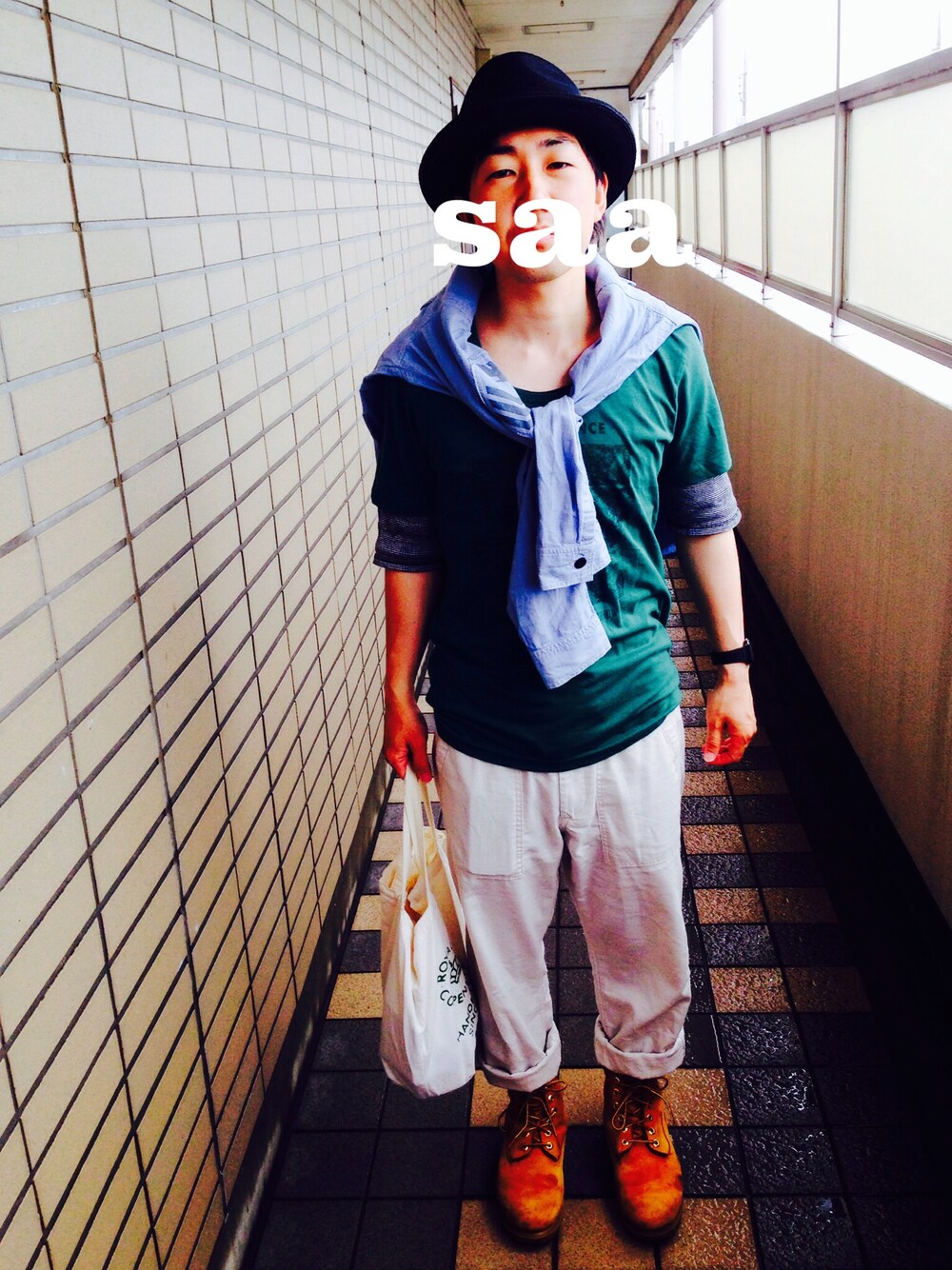 Tシャツ▷GU インナー▷RAGEBLUE シャツ▷古着 ボトムス▷GU 靴▷Timberland 帽子▷Lui's 彼もお出かけだったから コーディネート頼まれたー。 靴だけ彼のご所望。 •••何度やってもメンズは難しい‼︎‼︎
