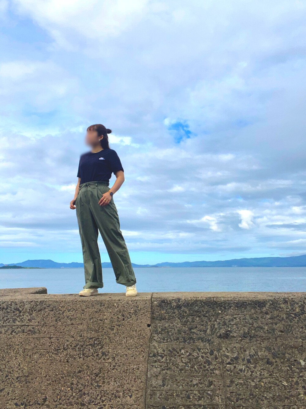朝の海沿いは涼しい⛱ 黒T×カーキも良い◎ 今日は髪のうねりがいい感じ︎︎𖤣𖥧𖥣。𖤣𖥧𖥣。 なのでキャップやめてみた𓈒 𓂂𓏸 動脈ピース取り入れ✌🏻(笑)