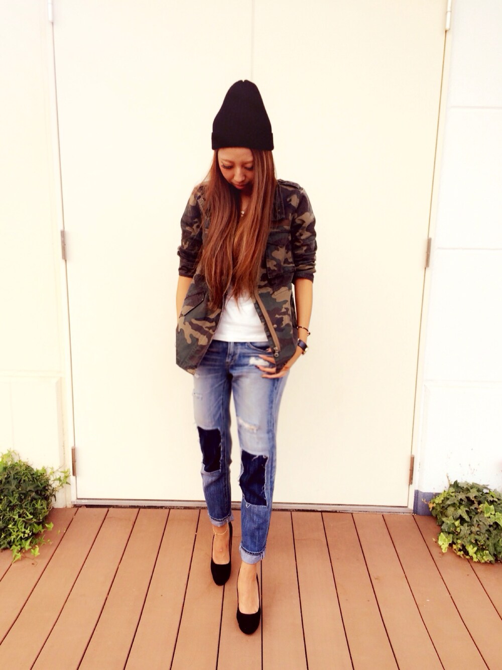 今日は、新作アイテムを使ったcodeを紹介します(っ´ω`c)♡ 迷彩の羽織りは、存在感があり、 テーパードパンツは、流行りのパッチワークになっているのが可愛い&お洒落に見えます♩ 新作アイテム多数入荷しています! お近くのAZULまで足を運んでみて下さい✽(′ॢᵕ ‵ *ॢ)✽