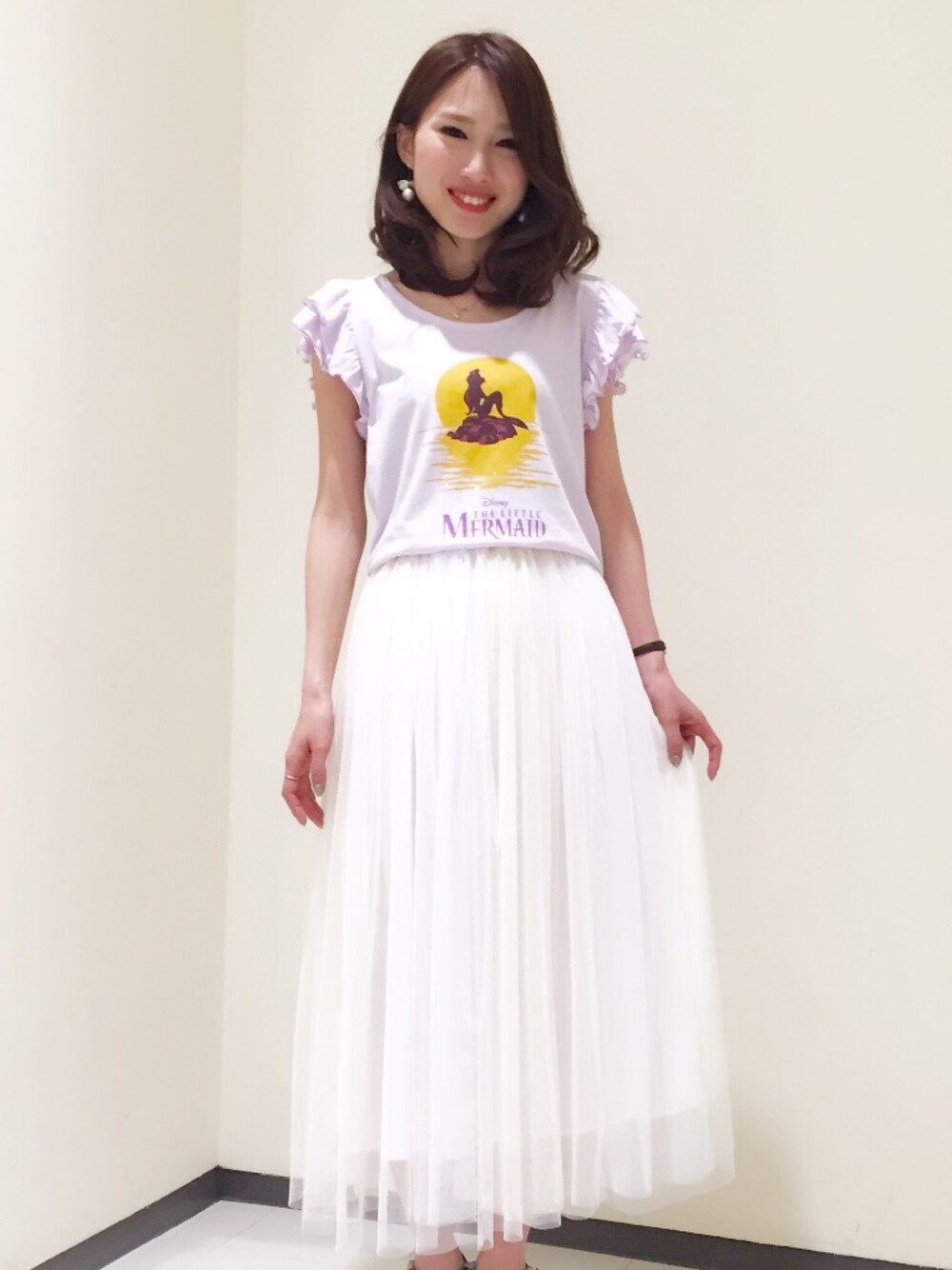 お問い合わせの多かった、アリエルのコラボTシャツとグラデーションマキシスカートが入荷です♡ Tシャツは袖のフリルと、カラーによってアリエルのカラーが違うのがポイント💓 スカートは中々他には無い、横のグラデーションがキレイです♡