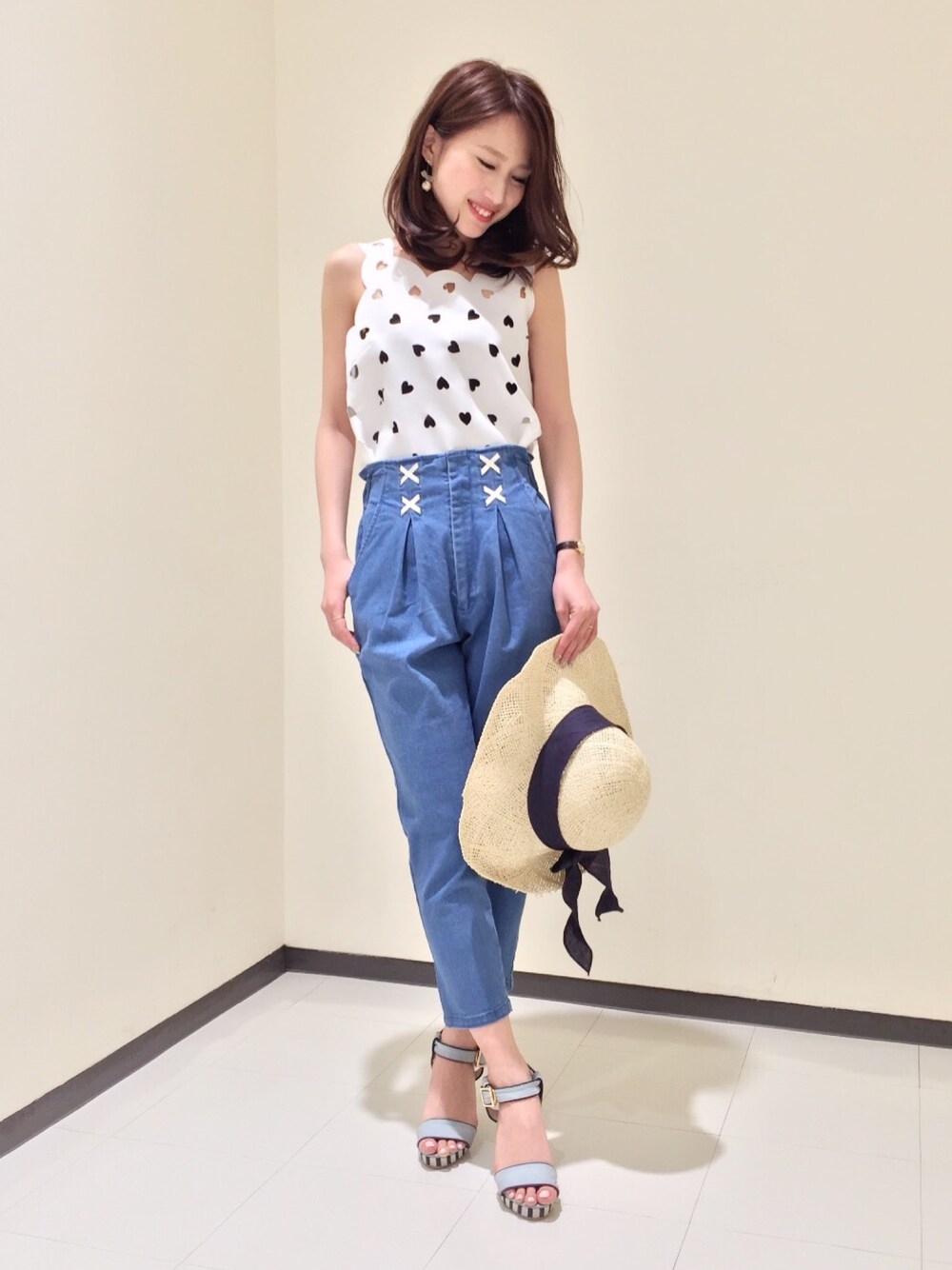 saki のデニムパンツ「【ar 2015年 08月号掲載】レースアップデニムパンツ」を使ったコーディネート