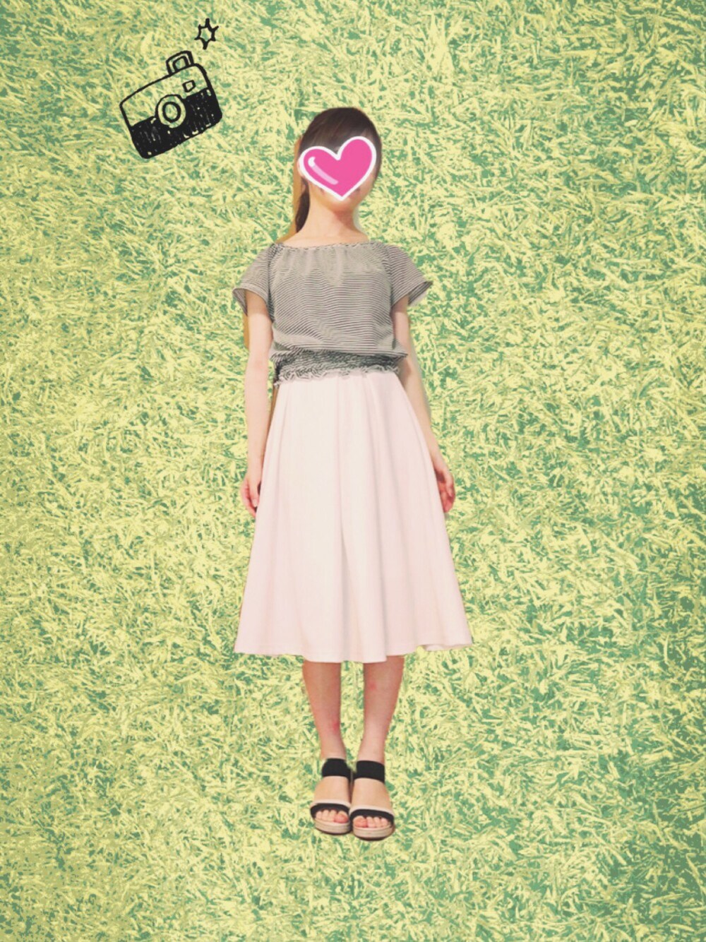 あれ、この間のトップスだけ違うバージョンになってしまった( ¯•ω•¯ ) シンプルコーデ.+*:゚+。.☆ ボーダーに白のミディスカート◎! 足の虫さされがひどい(ヽ´ω`)