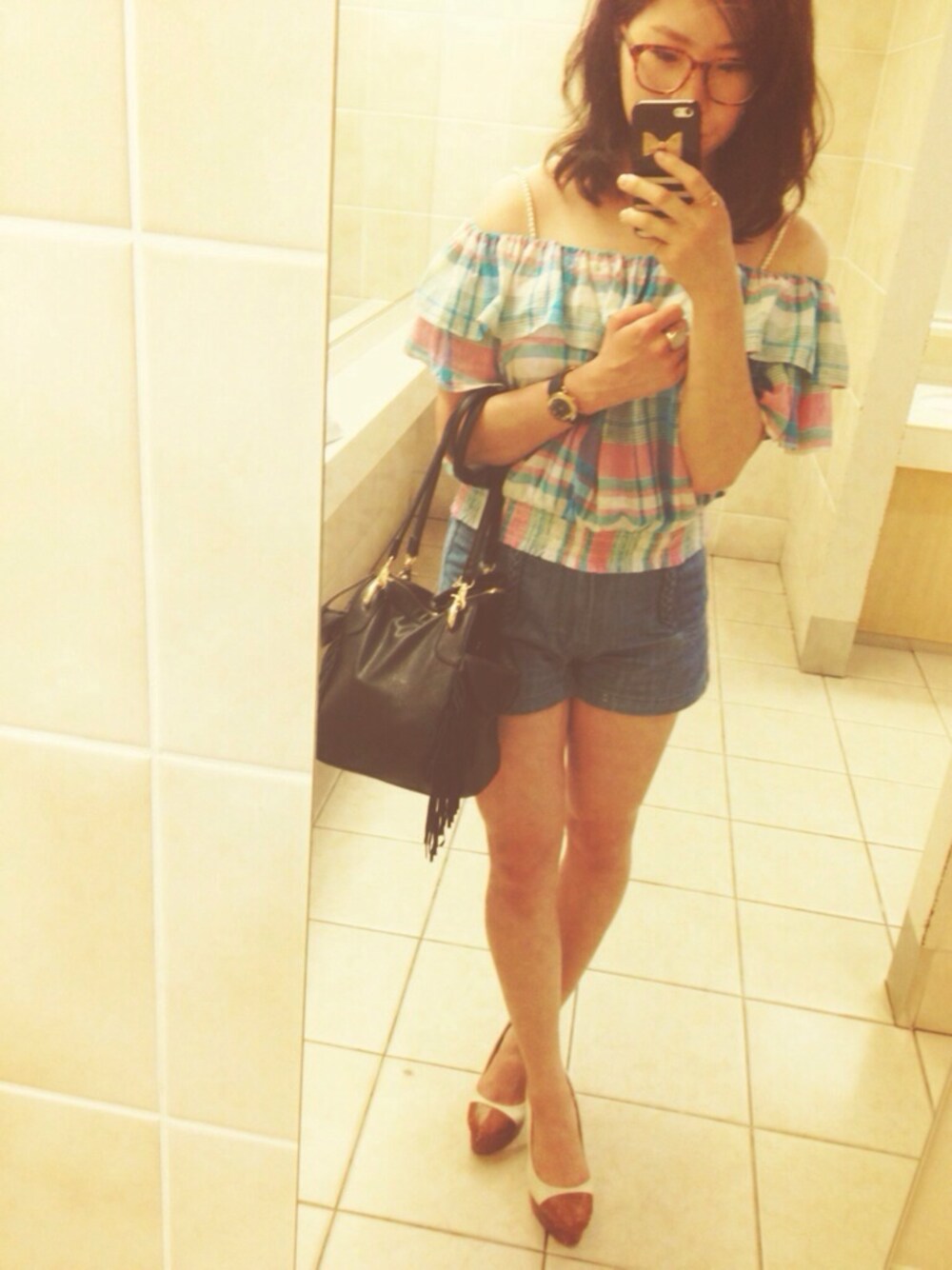 6/7 code❥ いっきに夏codeに変身。 雨上がりで蒸し蒸ししてたから ちょうどよかったかな♡ 肩見せは大人の肌見せ☜ 舞台挨拶行ってきました(´;ω;`) ♡