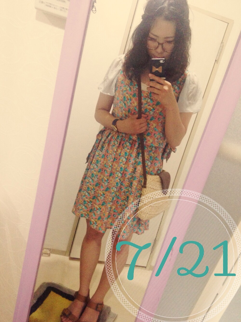 7/21 地元でlunch❥ 久々にいつも着ない 花柄のセットアップOPを ひっぱりだしてきた(^ω^) セットアップ:Kastane フリルTシャツ:Kastane サンダル:Kastane Kastane code!