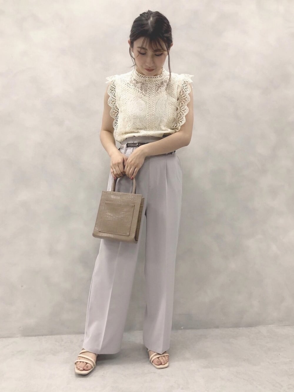 咲栄のシャツ/ブラウス「レース切替ノースリブラウス」を使ったコーディネート