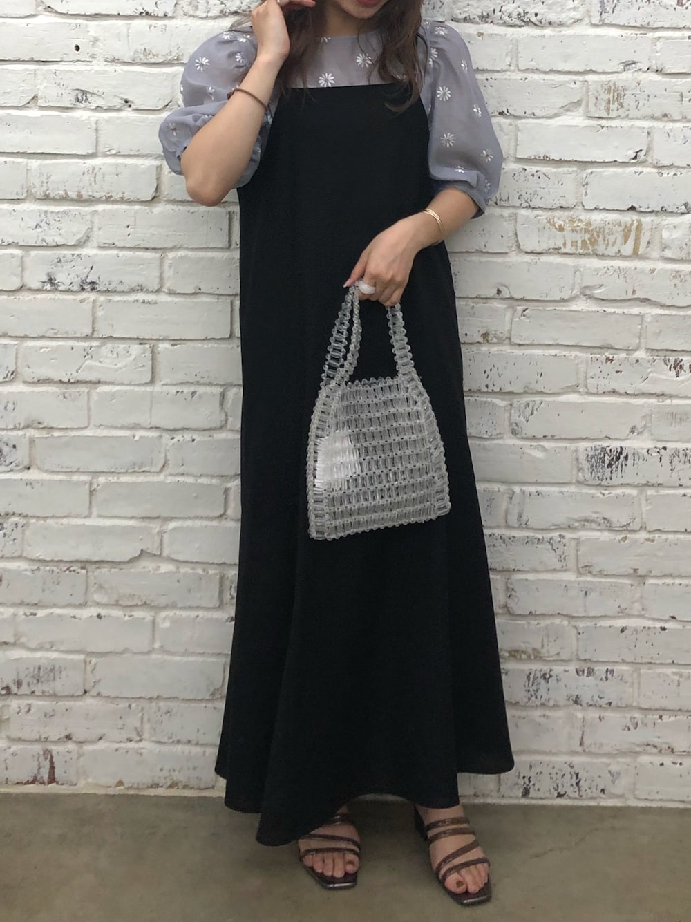 前回の投稿と色違いのキャミワンピ♡ 前後2wayなのです! 甘めなブラウスでもサンダルなど合わせるものをブラックにすると甘さも控えめにできます❤︎ ブラウスはインナーもセットになっているので安心です!