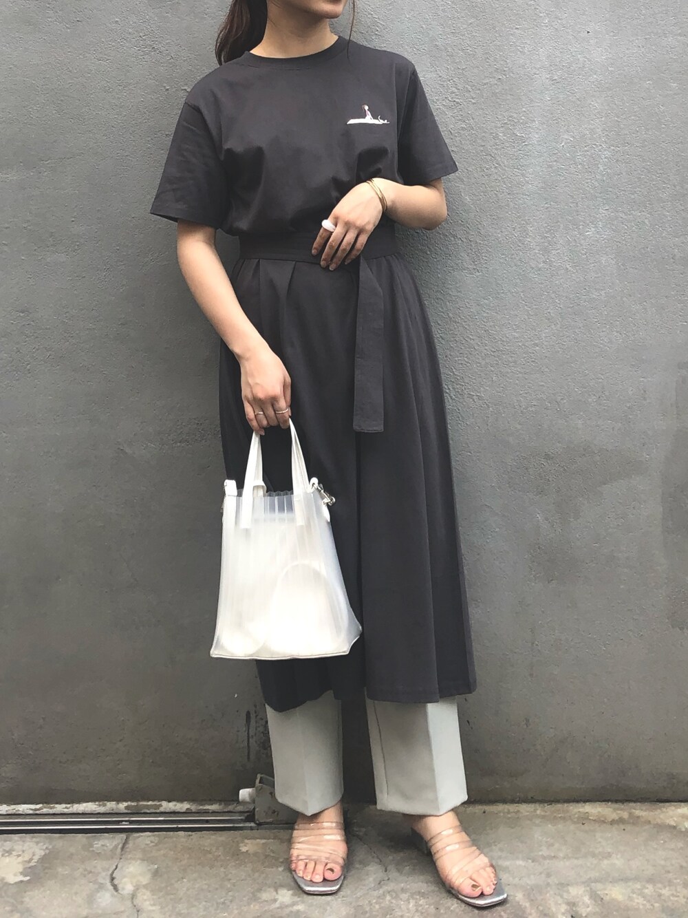 このワンピは本当に楽チンで、、、 おうち時間にもピッタリです◎ カラーパンツやデニムなどパンツをレイヤードすることで一気におしゃれ感上がる気がします、、(笑)
