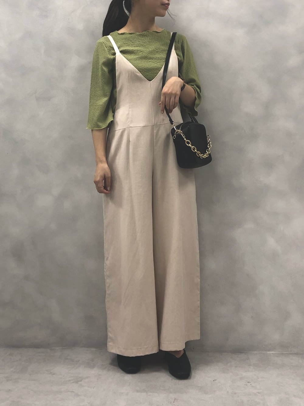 着回し抜群のポコポコトップス💚 一枚で着ても透けないので安心です! 袖丈も肘下くらいまであるので日焼け対策にもなります! サロペットは、長さが結構調節できるようになっているので低身長さんでも高身長さんでも着ていただけます🌟