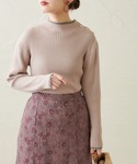 咲栄のニット/セーター「配色ラインリブニット」を使ったコーディネート