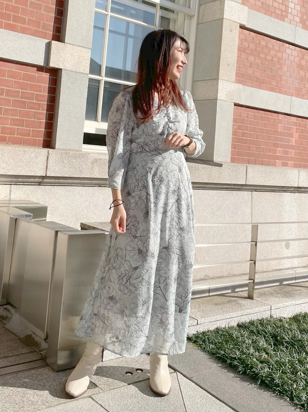 咲栄(natural couture)のワンピース「線画ジャガードワンピース」を使ったコーディネート