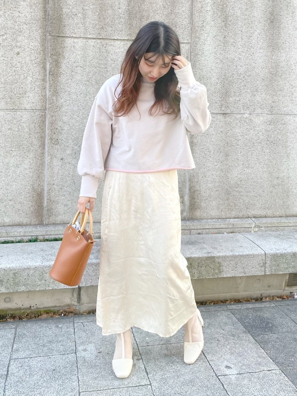 咲栄のスウェット「春めき配色裏毛ショートプルオーバー」を使ったコーディネート